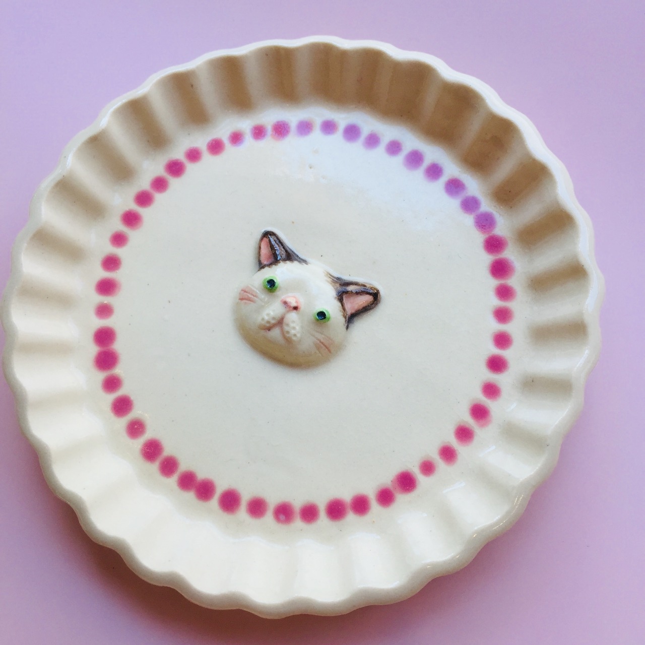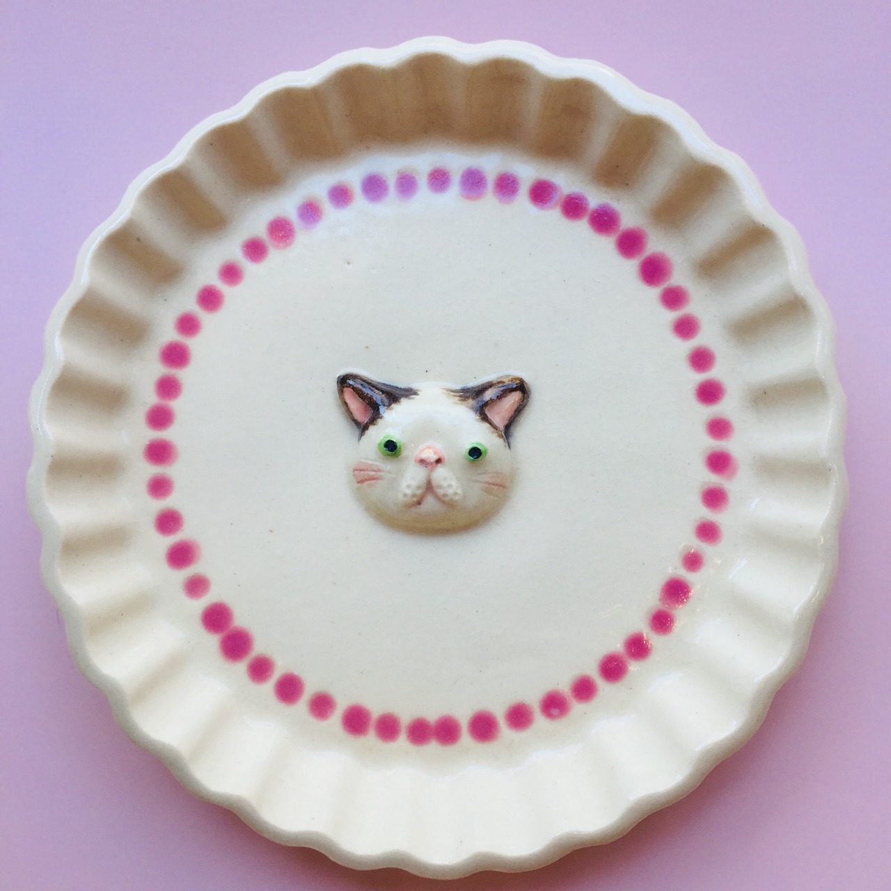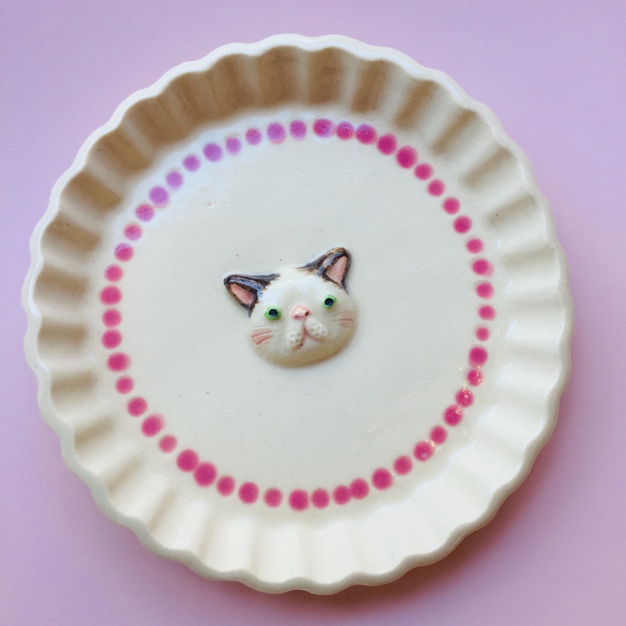 お皿にはかわいいねこがデコレーションされています。
