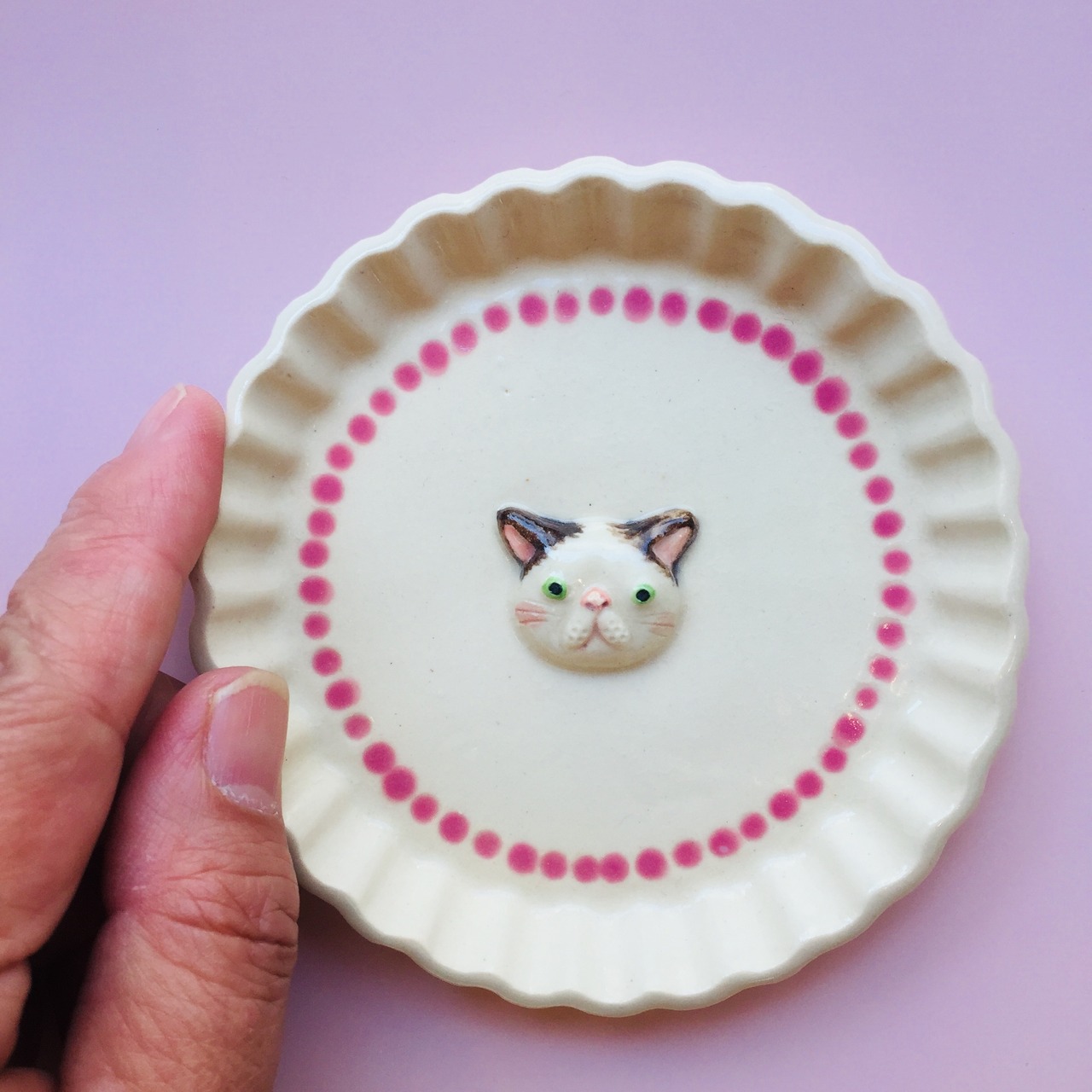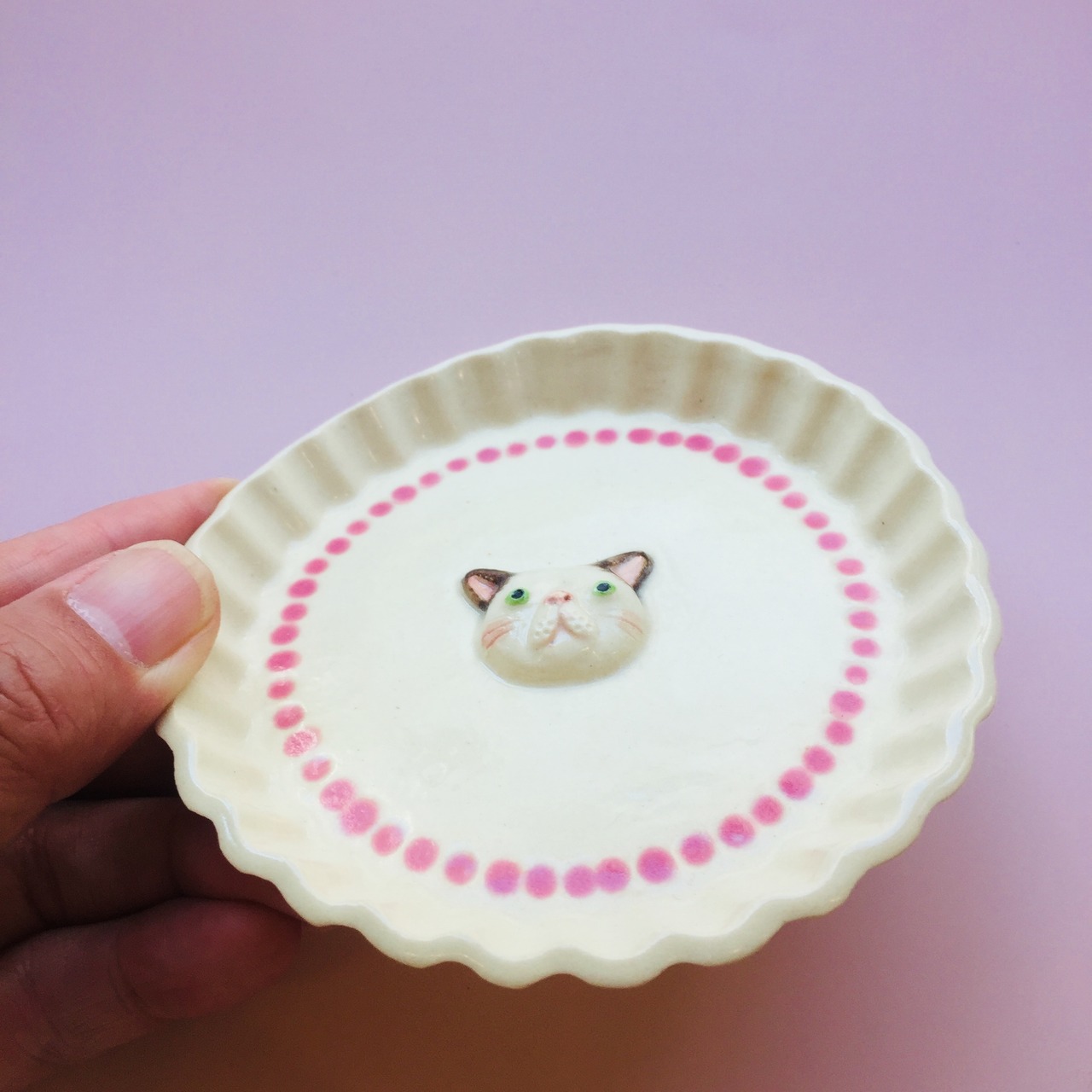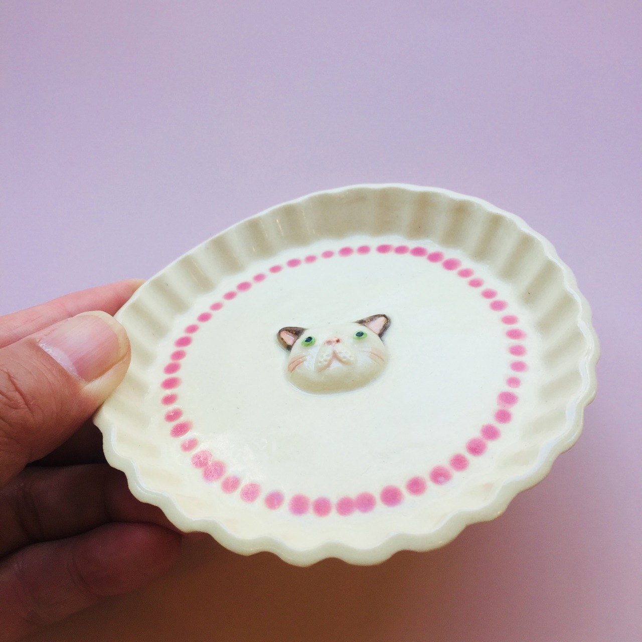 お皿にはかわいいねこがデコレーションされています。