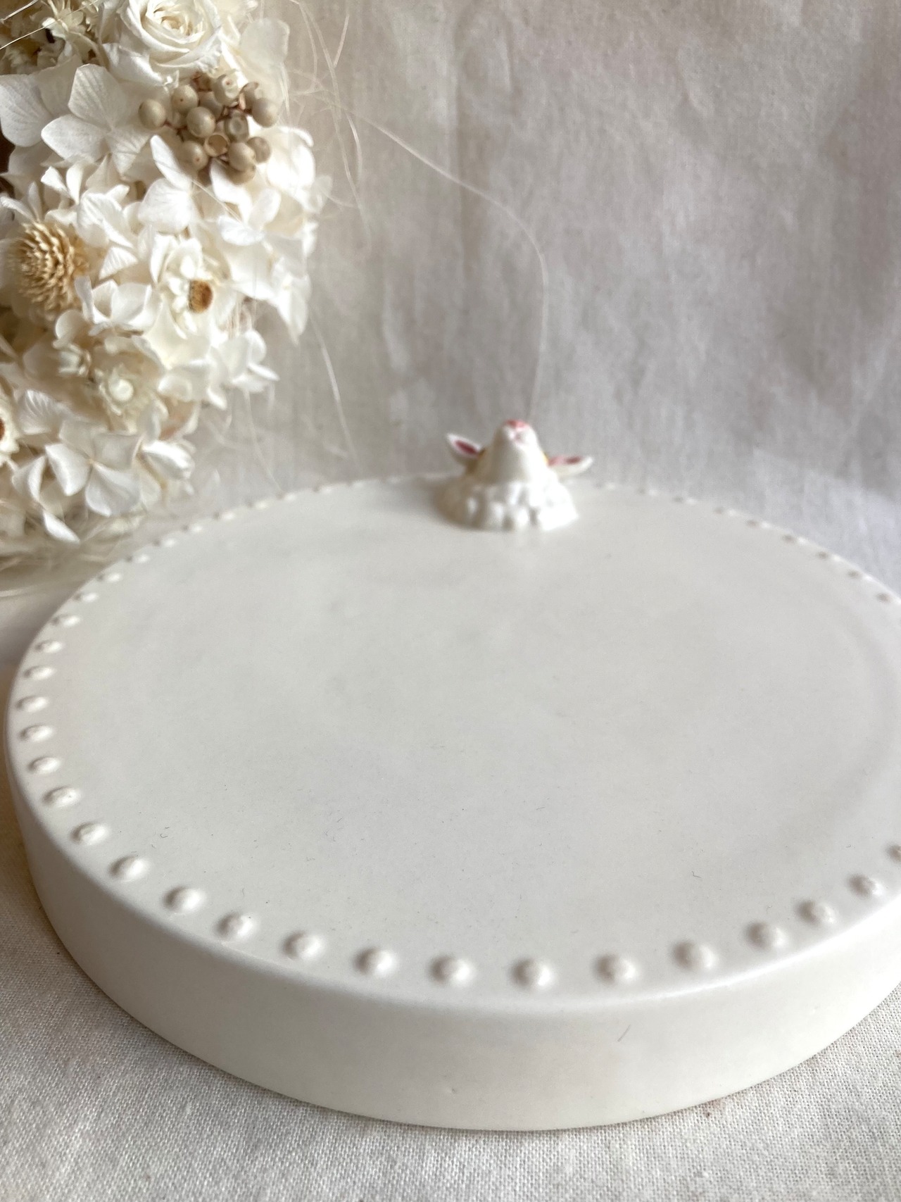 サイズ 直径約15.3センチ×高さ約2センチ×羊までまで約4センチ